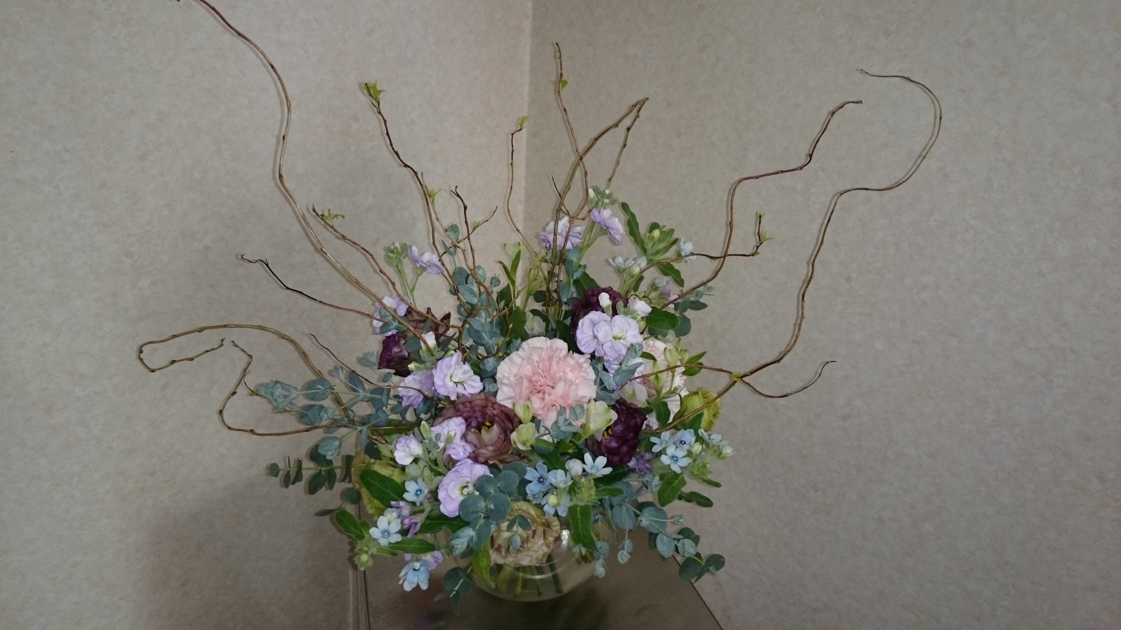 トルコキキョウ・ストック・ブルースター・カーネーション・アルストロメリア・グニユーカリ・雲竜柳