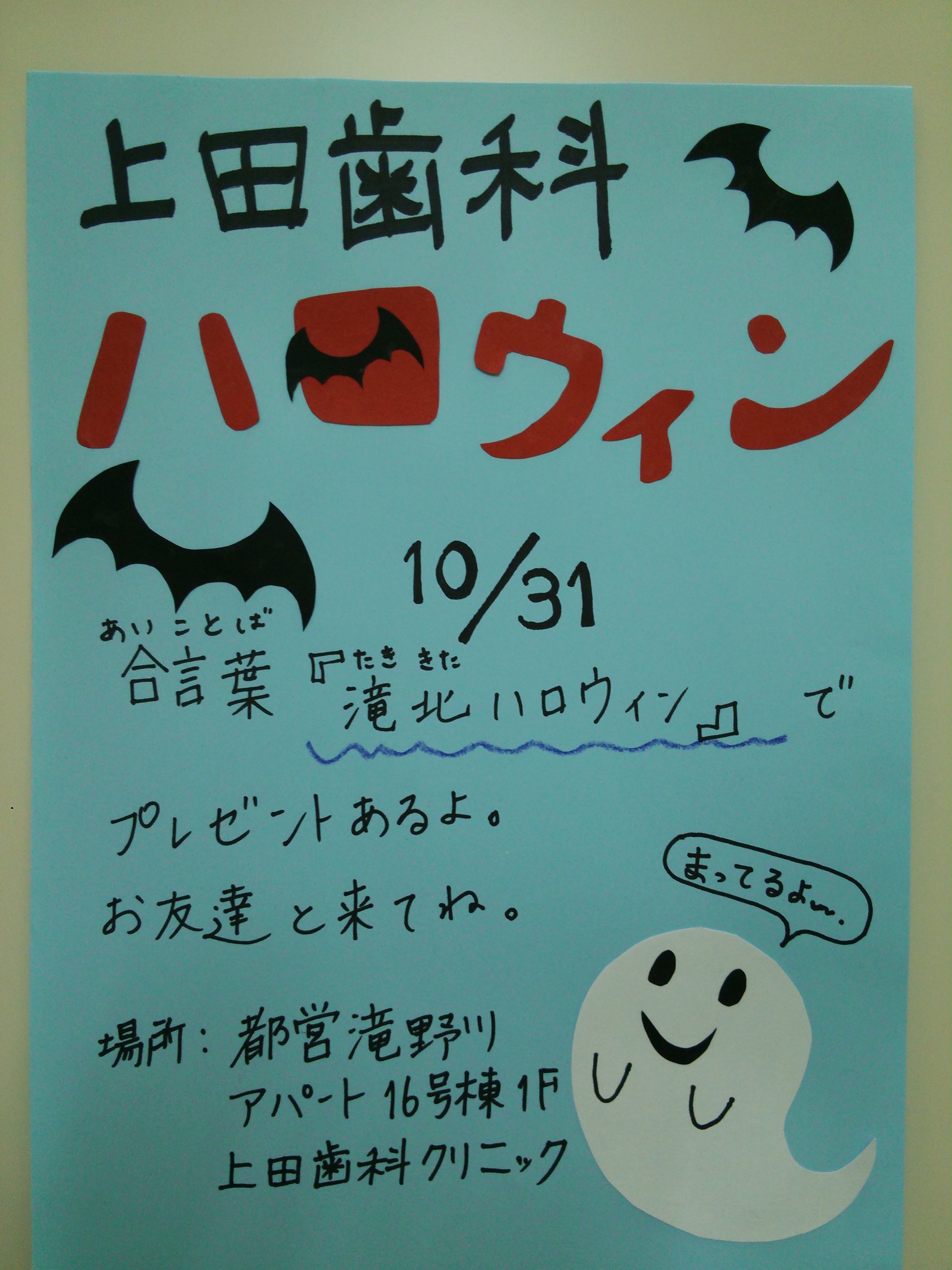みんな思い思いの仮装と可愛い手作りのカボチャのかごを下げて、合言葉の「たききたハロウィン」を大きな声で言ってくれました。(^_^)
