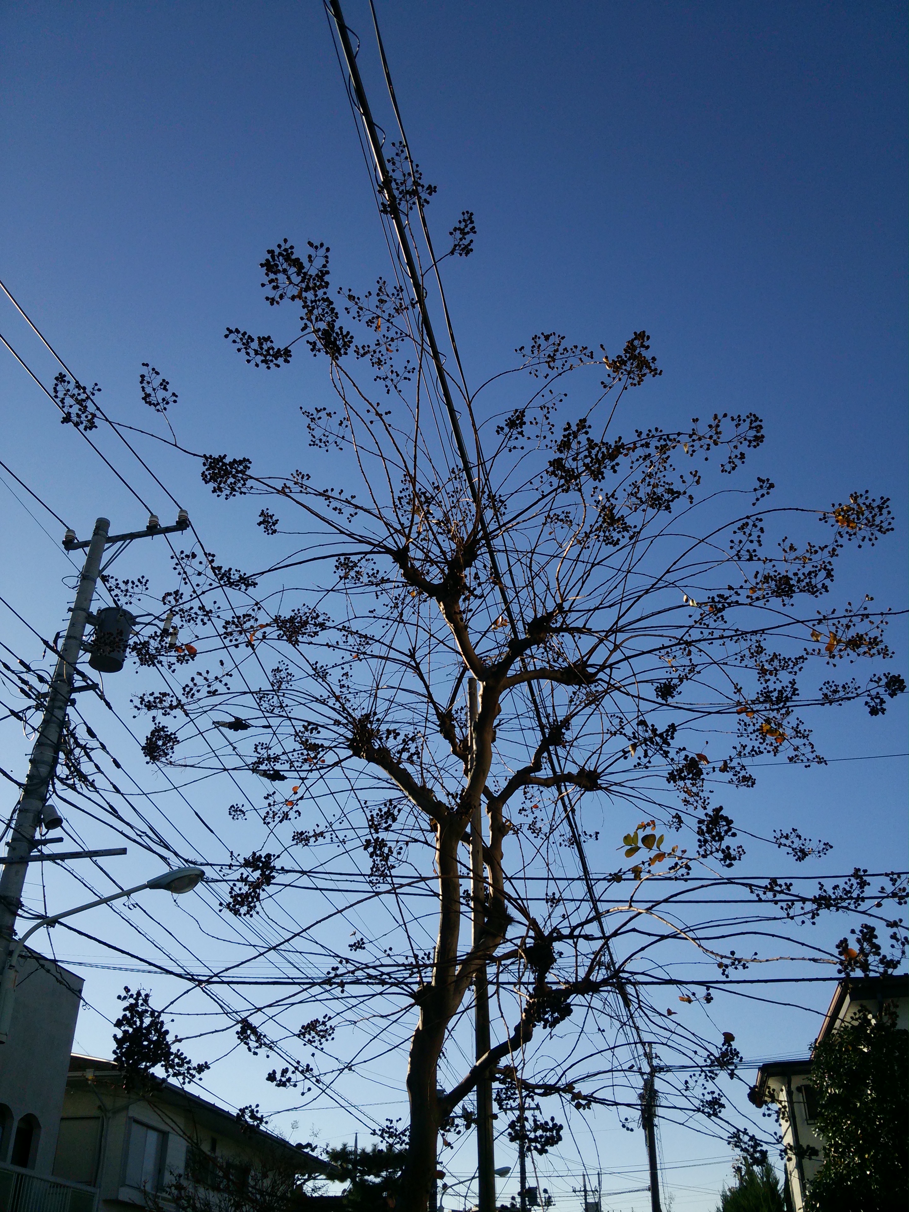 拙い写真で分かりますか?夏の通勤時の目を楽しませてくれた百日紅の現在です。すっかり葉が落ちて実と枝だけですけれど、これはこれで素敵ですね。